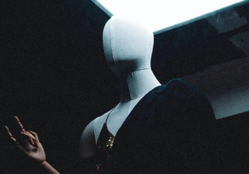 In the spotlight, a mannequin raises questions about identity and void, symbolizing the tension between presence and absence.