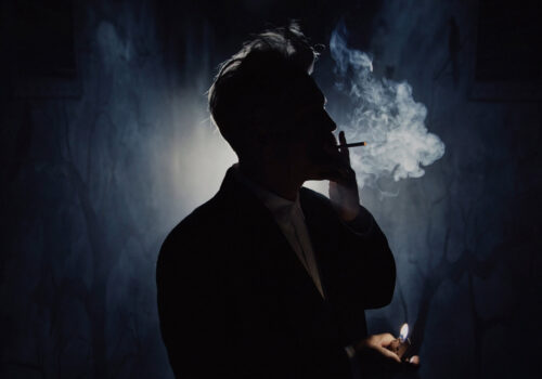 A mysterious scene unfolds in the smoke, where shadows of silent thoughts reveal hidden meanings and unspoken emotions.