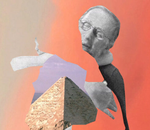 A surreal collage blends history with modern views, creating an artistic landscape where past and present converge in unexpected ways.